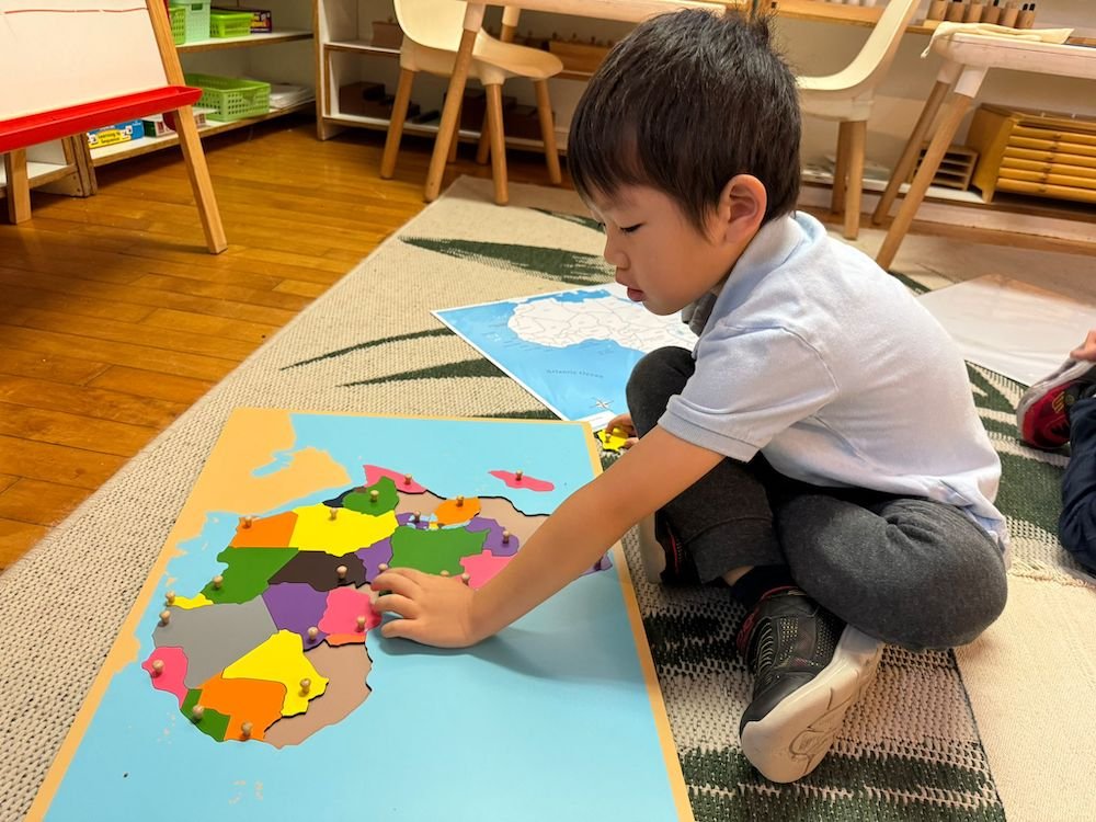The cultural area is divided into geography, history, nature and science. There are many geography materials in the classroom to teach a child their place in the world. History assists a child in learning about the concept of change. By looking at the seasons, studying theweather and changing the calendar daily it helps the child to establish a cycle of time. Children are encouraged to bring things to put in our nature area. When a child’s birthday arrives there is a special lesson that occurs: a representation of the sun is placed on