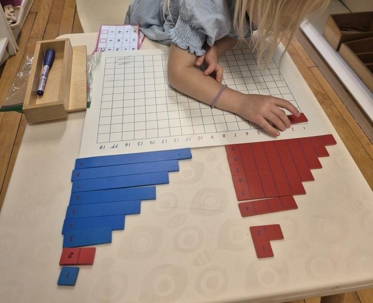 Math - The Montessori math program is designed to develop the child’s sense of size, proportions, quantity, shape, and concepts of numbers, fractions, decimals and basic operations of adding, subtracting, multiplying and dividing. Our Montessori classroom is so different from the average classroom that we invite parents and their children to experience it for themselves. Just give us a call to arrange a time for your visit.